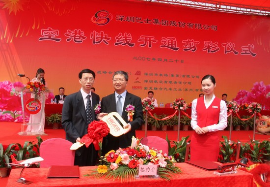 4月20日,在深圳宝安国际机场举行的空港快线开通仪式上,164辆海格客车正式投入连接深圳机场与深圳各区的6条新线路运营。空港快线大部分行驶高速公路,机场乘客通过乘坐空港快线直达机场候机楼,免去频繁转车、搬运行李等种种不便,并以“准航空式”服务,将空中服务延伸至地面交通,真正全方位实现“空中地面的无缝对接”。今后,无人陪伴儿童或老人的特殊旅客服务将延伸到巴士乘车处。不久,还将开展远程值机服务,深圳航空公司将把值机手续前移到空港巴士上,让旅客在前往机场的路上就能换取登机牌,免去在机场排队等候之苦。